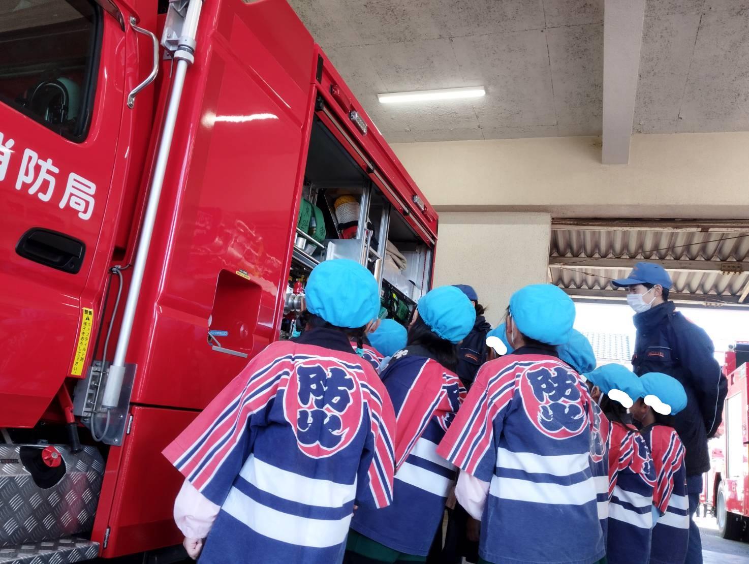 消防車を間近で見せていただき、子どもたちは興味津々。