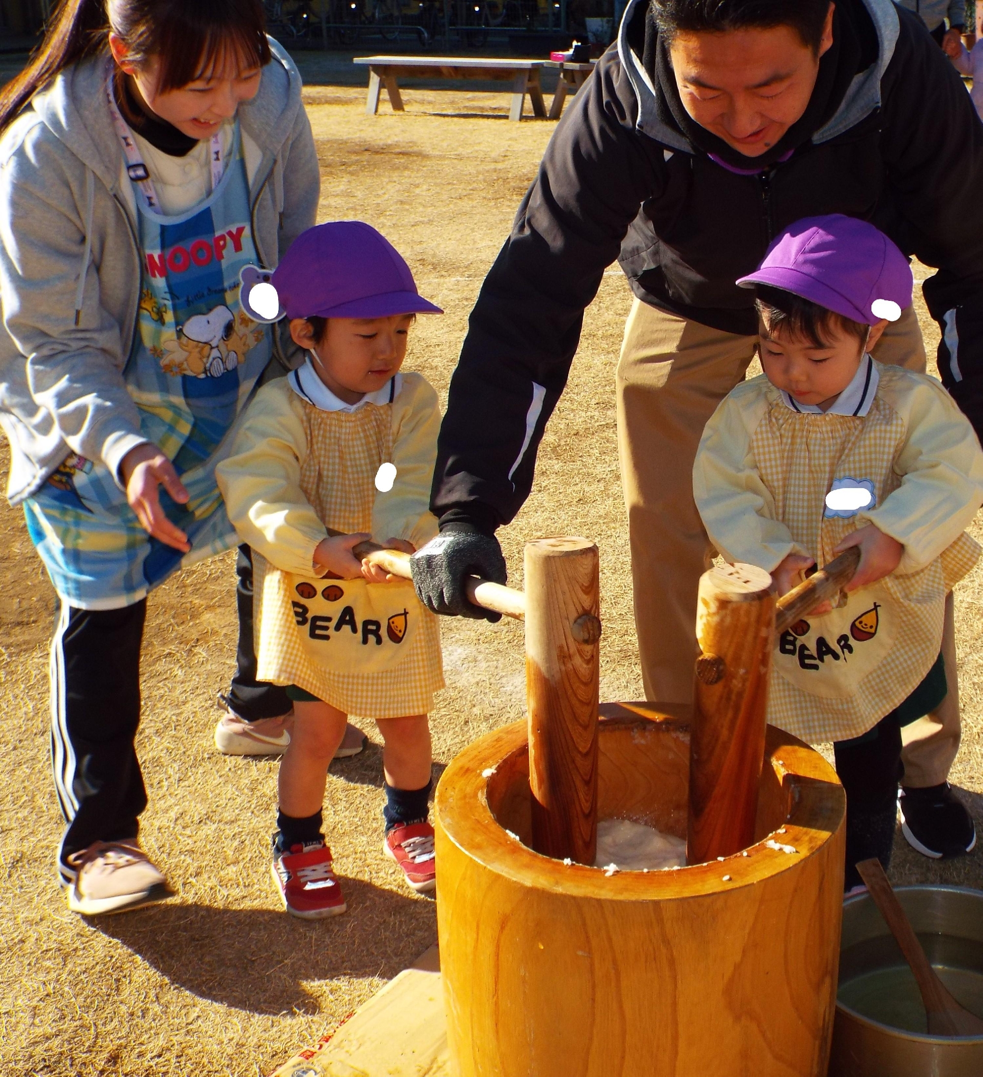 今日はみんなでお餅つきをしました。
