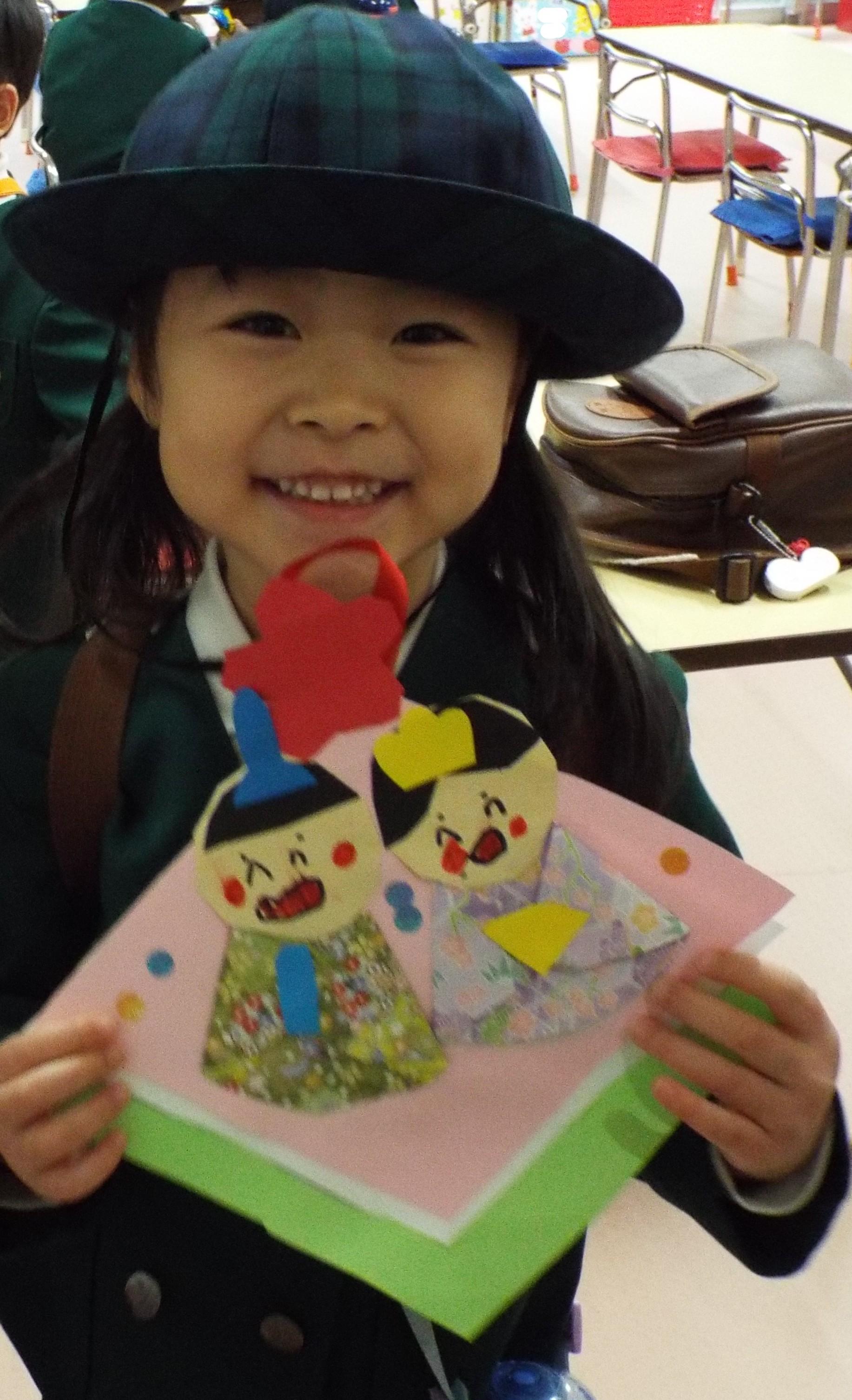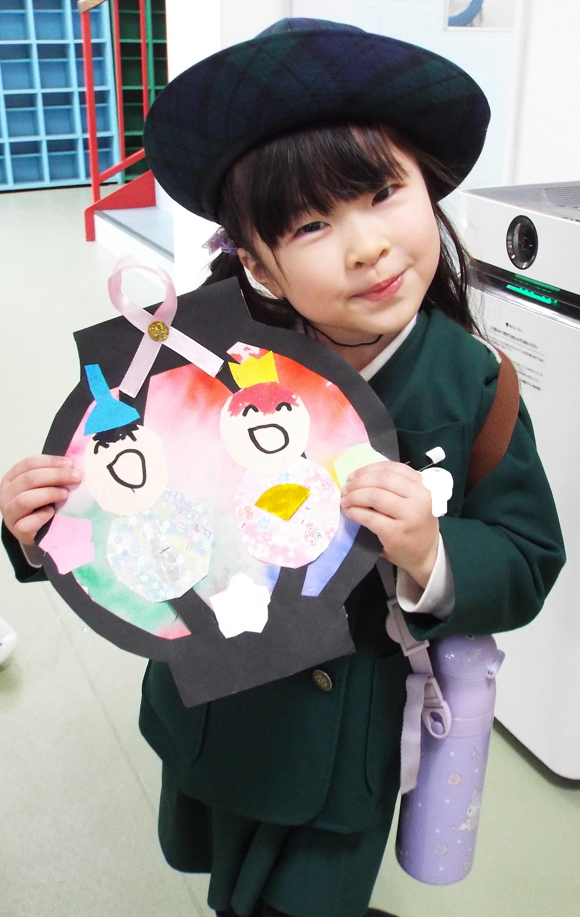 幼稚園で制作した雛祭りの作品を持ち帰りました。