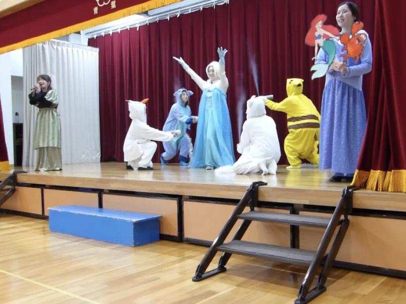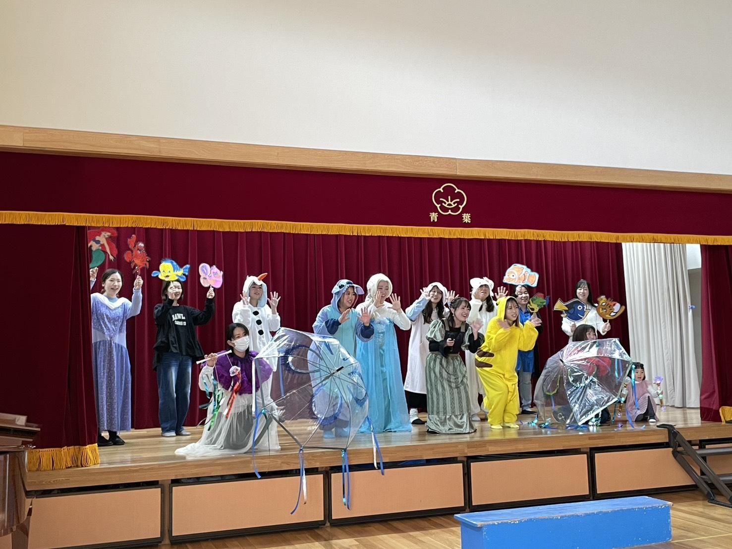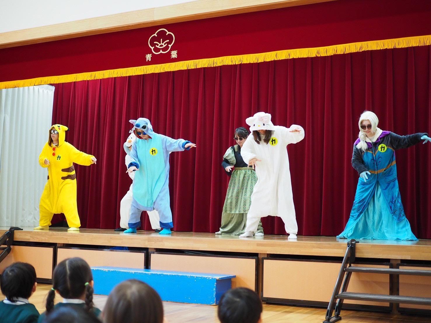 たくさんのキャラクターたち(エルサがいる!ピカチュウもいる!!)が登場したり、ペープサートやダンスなど、内容が盛りだくさんのステージ♬
